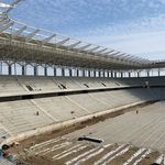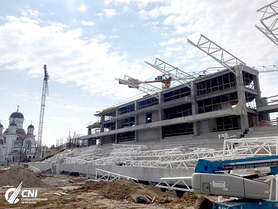 Pe santierul de la Arcul de Triumf se lucreaza la montajul gradenelor. Valoarea investitiei este de 160 de milioane de lei, suma actualizata, ce include TVA, taxe si avize. Arena de la Arcul de Triumf va avea o suprafata construita de 122.000 mp si 8.207 locuri.