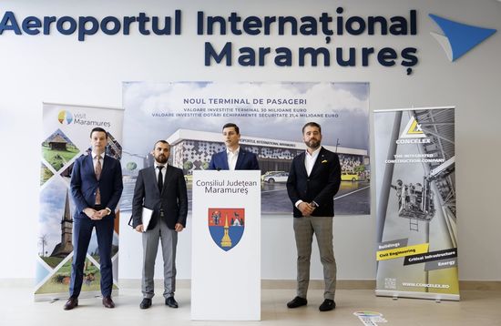 Consiliul Judetean (CJ) Maramures a semnat ,alaturi de o asociere al carei lider este compania de contructii Concelex, contractul pentru proiectarea si executia noului terminal de pasageri al Aeroportul International Maramures (AIMM). La eveniment au participat Ionel Bogdan - presedintele CJ Maramures, Ing. Catalin Visan - directorul executiv al Concelex, Dorin Buda - directorul general al AIMM si Ionut Caraba - directorul de dezvoltare al AIMM. Valoarea totala a proiectului este de 134,23 milioane de lei, din care 95,9 milioane de lei reprezinta finantarea nerambursabila din Fondul European de Dezvoltare Regionala (FEDR), prin Programul Operational Infrastructura Mare (POIM), 14,67 milioane de lei constituie finantare nerambursabila din bugetul national si 2,25 milioane de lei, cofinantarea eligibila a CJ Maramures.