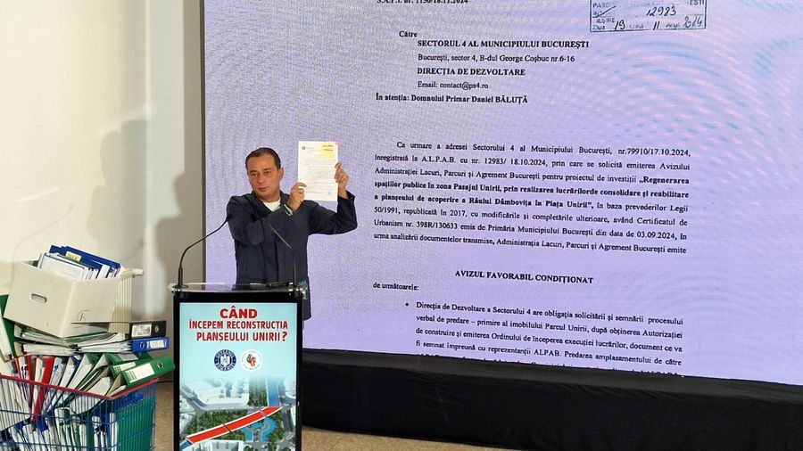 "Asa cum am mai spus, noi suntem pregatiti. Avem finantare, avem contractul semnat, toata documentatia e pregatita. Toate expertizele, studiile, avizele cerute de Primaria Capitalei sunt aici. Fara folos, insa! In lipsa semnaturii Primarului General, stam pe loc, desi degradarea Planseului Unirii nu se opreste", a mai afirmat Daniel Baluta.