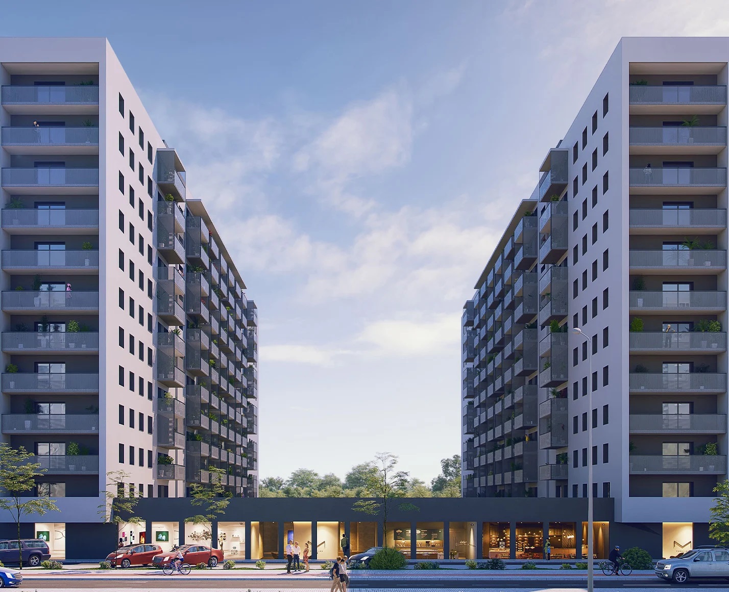 In prima faza a proiectului vor fi livrate 129 de apartamente intr-un bloc de 11 etaje: 89 de apartamente cu doua camere, 28 cu 3 camere si 12 cu 4 camere. Complexul va avea 627 locuri de parcare subterane, precum si peste 1.800 mp de spatii comerciale. Toate apartamentele vor avea terase spatioase, incalzire prin pardoseala, centrala termica individuala, aer conditionat preinstalat si tamplarie exterioara din PVC.
