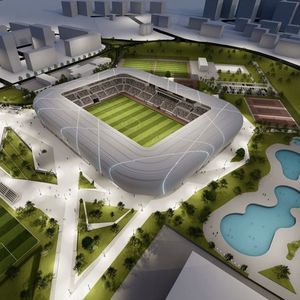 Pe langa spatiile interioare, se va propune o noua amenajare exterioara, prin care sa se creeze zone de promenada si de evenimente, precum si o parcare cu 435 de locuri. Terenul principal de fotbal va fi dotat cu nocturne, ecran de difuzare si tabele de scor electronice.