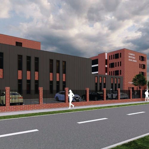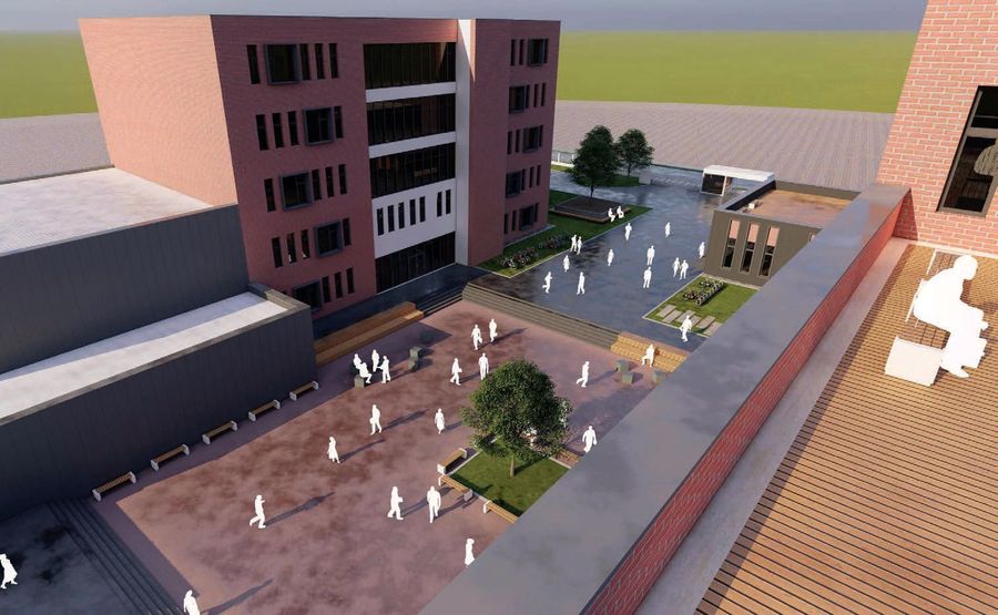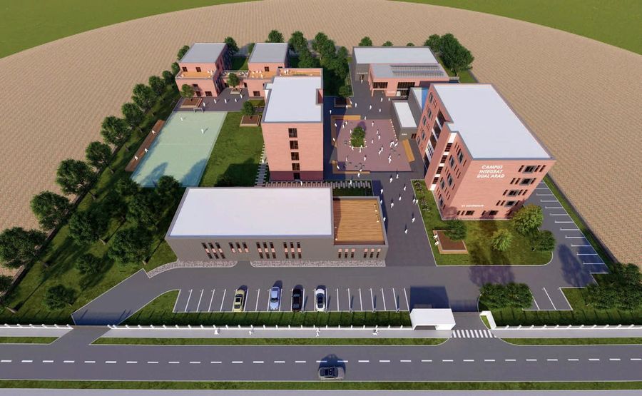 • Corp 2 - Liceu (P+4E), cu o suprafata desfasurata 3.100 mp, ce va include sali de curs, laboratoare, spatii de recreere, co-working, zona pentru profesori, grupuri sanitare, spatii tehnice;