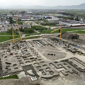 Conform reprezentantilor firmei de constructii, pana in acest moment s-au realizat lucrari de terasare, turnarea celor 1.915 de piloti forati cu diametre intre 500 si 600 de mm si cu o lungime de pana la 15 metri, la o adancimea maxima de forare de 21,5 metri.