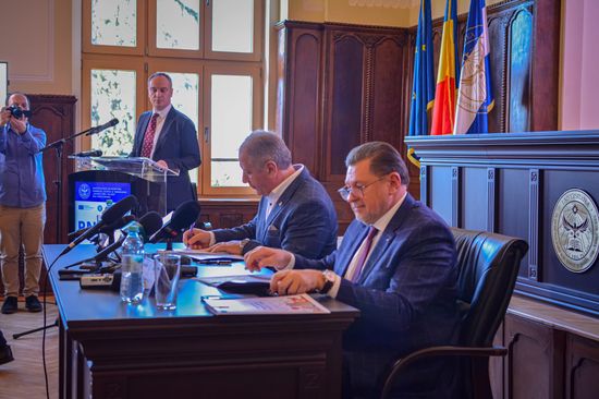 De asemenea, Emil Radu Moldovan, presedintele Consiliului Judetean Bistrita-Nasaud, a semnat contractul in valoare de 82.939.073 euro (fara TVA) pentru extinderea pavilionului Spitalului Judetean de Urgenta Bistrita, prin construirea unei cladiri noi.