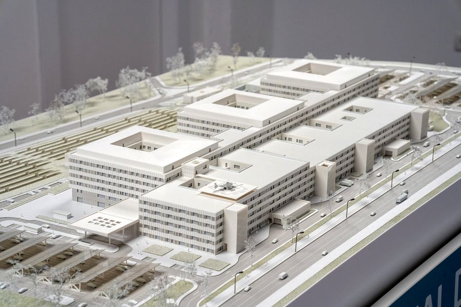 Ministerul Sanatatii a prezentat modelul arhitectural 3D al viitorului Spital Regional de Urgenta (SRU) Iasi, proiect evaluat la 669 milioane de euro care presupune constructia unui complex cu noua niveluri (2S+P+5E+E6-tehnic), cu 850 de paturi, heliport si spatii speciale pentru dezvoltarea profesionala a medicilor si asistentilor."In acest moment, proiectul SRU are autorizatia de construire, toate avizele si este verificat de evaluatorii atestati in domeniile de specialitate. Ministerul Sanatatii, impreuna cu Agentia Nationala pentru Dezvoltarea Infrastructurii in Sanatate, a aprobat o strategie de accelerare a lucrarilor si astfel speram ca la sfarsitul acestei luni sa publicam anuntul de intentie pentru pachetul I de lucrari. Asta inseamna ca la finalul verii, inceputul toamnei, vom avea utilajele in teren", a declarat managerul de proiect, Cristina Gafton.