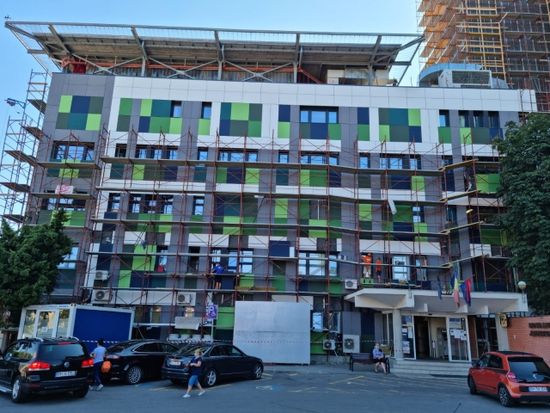 Pana in prezent, lucrarile au constat in realizarea termoizolarii cu vata bazaltica si montarea foliei pentru hidroizolatia terasei in zona heliportului. De asemenea, s-au efectuat lucrari de anvelopare a cladirii, au fost inlocuite ferestrele la fatada, usile de acces si lifturile. In acelasi timp, s-au executat lucrari la instalatii electrice, instalatiile de incalzire si climatizare.