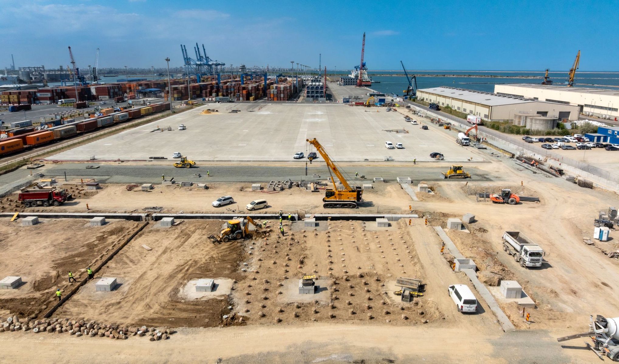 PORR Romania avanseaza cu lucrarile de constructie la noul terminal multimodal dezvoltat pe platforma portuara din zona D, pe MOL II-S Port Constanta Sud, de compania Constanta South Container Terminal, parte a DP World. Conform datelor transmise de constructor, la platforma 2 si platforma de manevrare lucrarile sunt finalizate in proportie de 80-90%, inclusiv cele la retele, la fundatiile stalpilor de 32 m, sprijiniri si piloti forati. "Marea provocare este executia unei cuve de beton armat, complet ingropata in terenul natural, destinata instalarii unui separator de hidrocarburi. La platforma 1, provocarile sunt semnificative, iar imbunatatirea terenului de fundare se realizeaza in adancime prin consolidarea rocii de baza cu coloane din beton simplu executate prin indesare si nuclee rigide si prin reducerea tasarii terenului pentru a asigura o fundatie stabila", au transmis reprezentantii Porr intr-o postare pe Linked in.In continuare, lucrarile avanseaza intr-un ritm alert la coloanele din beton si nuclee rigide, canalele tehnice (longitudinale si transversale), la rampe si ziduri de sprijin.