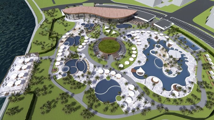 - Centru SPA care va functiona in cladirea principala, cu regim de inaltime subsol+parter+etaj partial, cu o suprafata desfasurata de 8.853 mp, care va include un ansamblu de bazine interioare (peste 500 mp de luciu de apa), zona de spa, filtre personal si public, vestiare, spatii tehnice, alimentatie publica, zona de birouri, foaiere, o sala fitness.