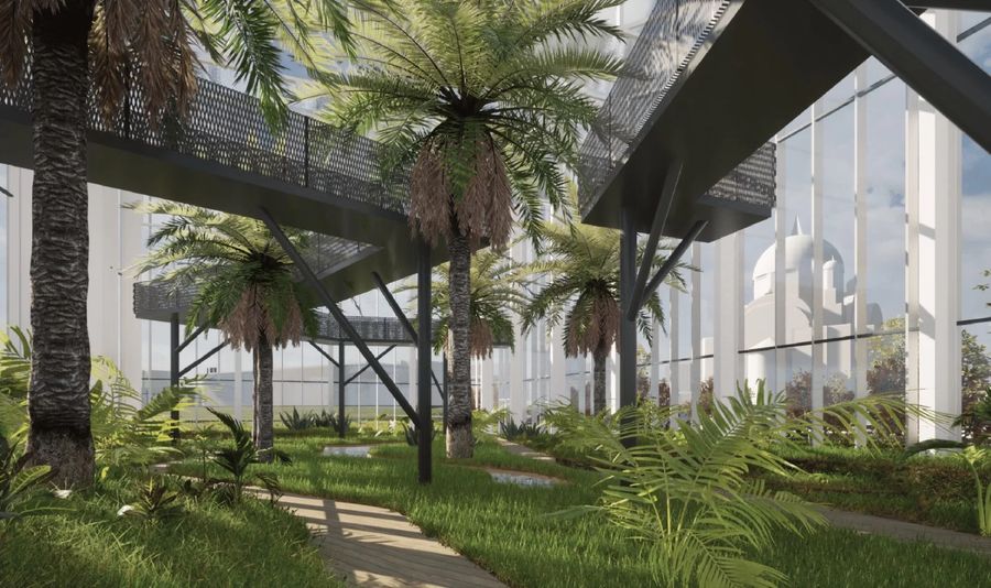 Proiectul presupune si realizarea unei promenade suspendate, care va face legatura intre Peta si Lotus. Accesul la aceasta pasarela se va face dinspre malul Petei, dinspre Trade Center si dintr-un turn de observatie, care va fi amplasat in mijlocul acestui complex botanic si care va fi realizat pe o structura usoara.