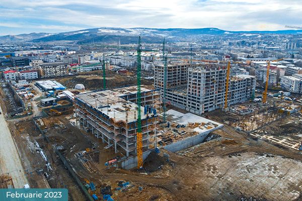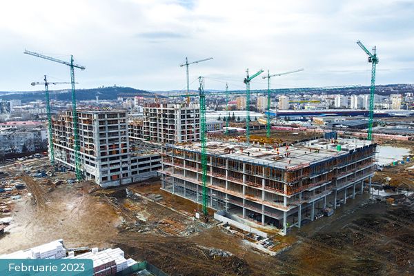 Lucrarile pentru Faza 1 de Birouri Clasa A se desfasoara in conformitate cu standardele de certificare BREEAM Outstanding. Acestea au fost demarate in cursul celui de-al doilea trimestru al anului 2022, iar pana in prezent, s-au realizat lucrarile de infrastructura ce au inclus un numar de 200 de piloti forati la adancimea de 15 m iar suprastructura si compartimentarile din zidarie ale cladirii se afla intr-un stadiu avansat de realizare. Concomitent cu lucrarile de constructii s-au demarat si cele pentru instalatii electrice, sanitare si pentru stingerea incendiilor. De asemenea, s-a montat o parte a structurii pentru fatada-cortina si in prezent se lucreaza la inchiderile vitrate. Termenul propus pentru finalizarea obiectivului este ultima parte a anului 2023.
