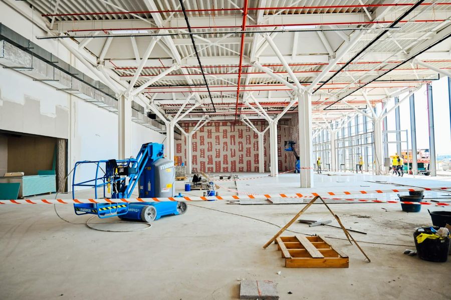 Peste 600 de muncitori sunt pe santierul Aeroportului International Sibiu, unde terminalul de pasageri va fi extins, modernizat si echipat cu tehnologie de securitate de ultima generatie, printr-o investitie ce depaseste 65 milioane de euro. Proiectul are termenul de finalizare stabilit in decembrie 2023.Conform datelor Consiliului Judetean Sibiu, progresul fizic al lucrarilor este de 48%, fiind realizate integral structura de rezistenta, acoperisul si invelitoarea. In aceasta perioada se realizeaza compartimentari interioare, se monteaza peretii-cortina, placile ceramice si se lucreaza la finisaje si instalatiile termice, de ventilatie, de stingere incendiu si energie electrica.