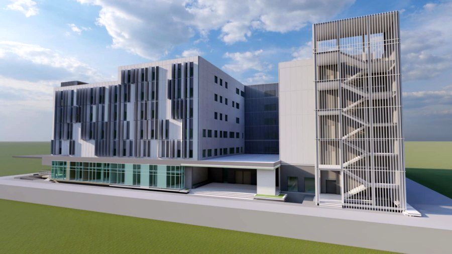 Pavilionului Municipal Bacau este situat in proximitatea SJU Bacau, pe un teren cu suprafata de 10.651 mp, fiind structurat pe 9 tronsoane de cladire despartite prin rosturi structurale, cu regim de inaltime S+P+5E si o suprafata desfasurata propusa de aproape 26.000 mp.