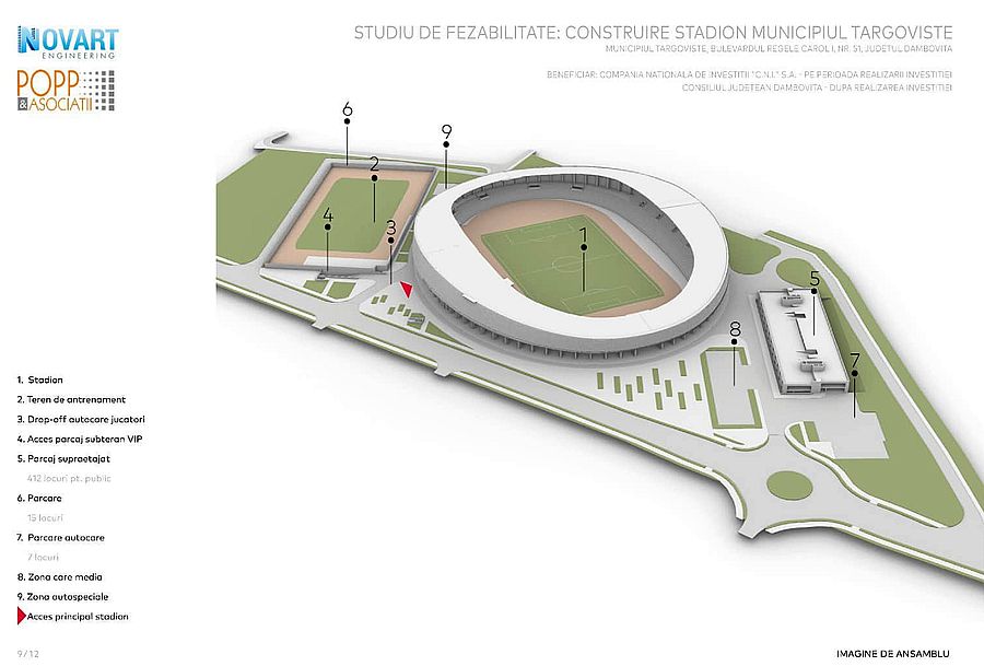 Sase oferte, elaborate de aproximativ 50 de companii, au fost depuse pentru proiectarea si executia noului stadion din Targoviste, lucrari estimate la aproximativ 310 milioane lei (inclusiv TVA). Perioada alocata acestei etape s-a incheiat recent, ofertele urmand a fi evaluate din punct de vedere tehnic si financiar pana la finalul lunii noiembrie 2022.Cele sase oferte au fost depuse de: