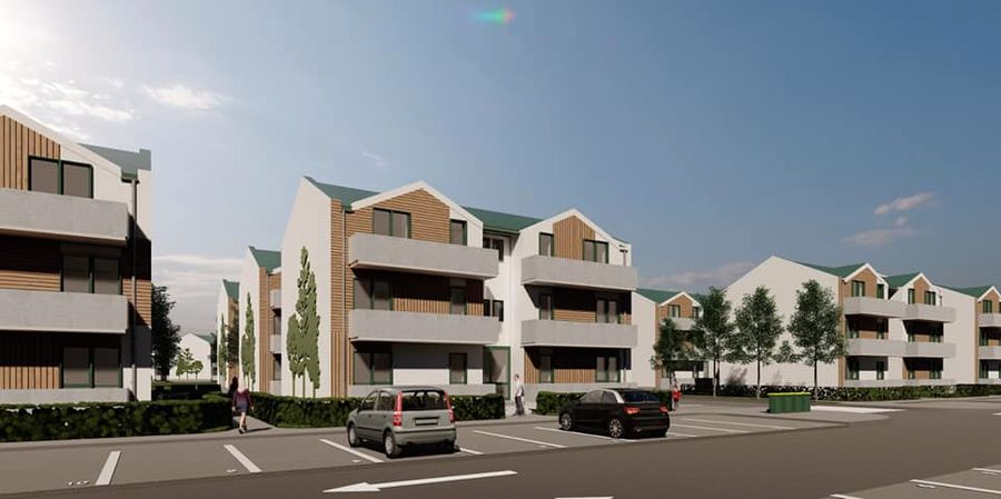 Cele 100 de cladiri vor fi independente energetic, de tip NZEB plus, si vor fi dotate cu panouri fotovoltaice care vor asigura necesarul de energie pentru fiecare bloc, precum si cu pompe de caldura. Infrastructura va fi realizata prin intermediul fundatiilor continue si a celor de tip radier, iar suprastructura va fi din lemn ignifugat, tratat. Acoperisul va fi tip sarpanta, cu izolat cu termosistem de 40 cm, iar peretii de tip compozit, cu strat termoizolator final de 30 cm.