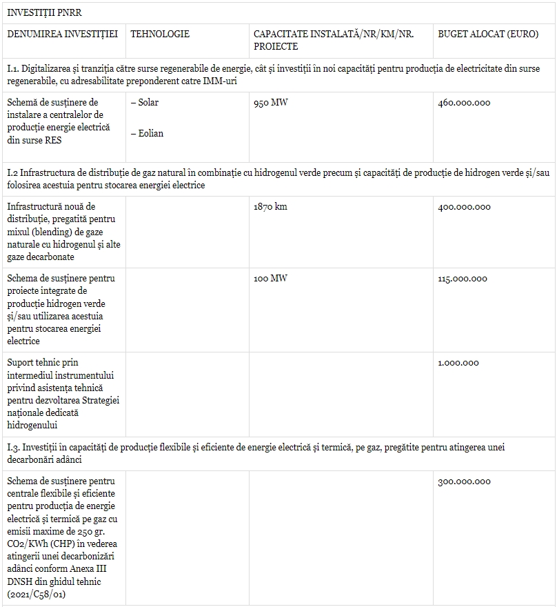 ”Asa cum ne-am asumat prin programul de guvernare, dar si cu privire la atingerea tintelor de decarbonare asumate de Romania avem nevoie de investitii serioase in domeniul energiei. Resurse financiare exista, iar anul acesta vom lansa mai multe call-uri de proiecte in vederea accesarii acestor fonduri. La ministerul Energiei s-a lucrat deja si avem aproape finalizate mai multe ghiduri pentru call-urile de proiecte, dar si scheme de finantare. De exemplu, in luna martie intentionam sa lansam apel pentru RES (Renewable Energy Sources) si pentru productia de Hidrogen -achizitie de electrolizoare. Avem deja pregatit proiectul Ordonantei de Urgenta pentru stabilirea detaliilor ale Fondului pentru Modernizare. Exista fonduri si am incredere ca anul acesta si anii urmatori vom incepe sa investim cele peste 16 miliarde de euro pentru viitorul Energiei si asigurarea securitatii energetice a Romaniei”, a declarat ministrul Energiei Virgil Popescu.
