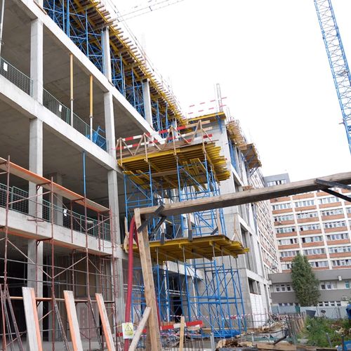 Pe santierul unde se construieste noul Centru de Mari Arsi din Timisoara, antreprenorul general - compania Constructii Erbasu SA - lucreaza intens la finisaje, instalatii si la structura...