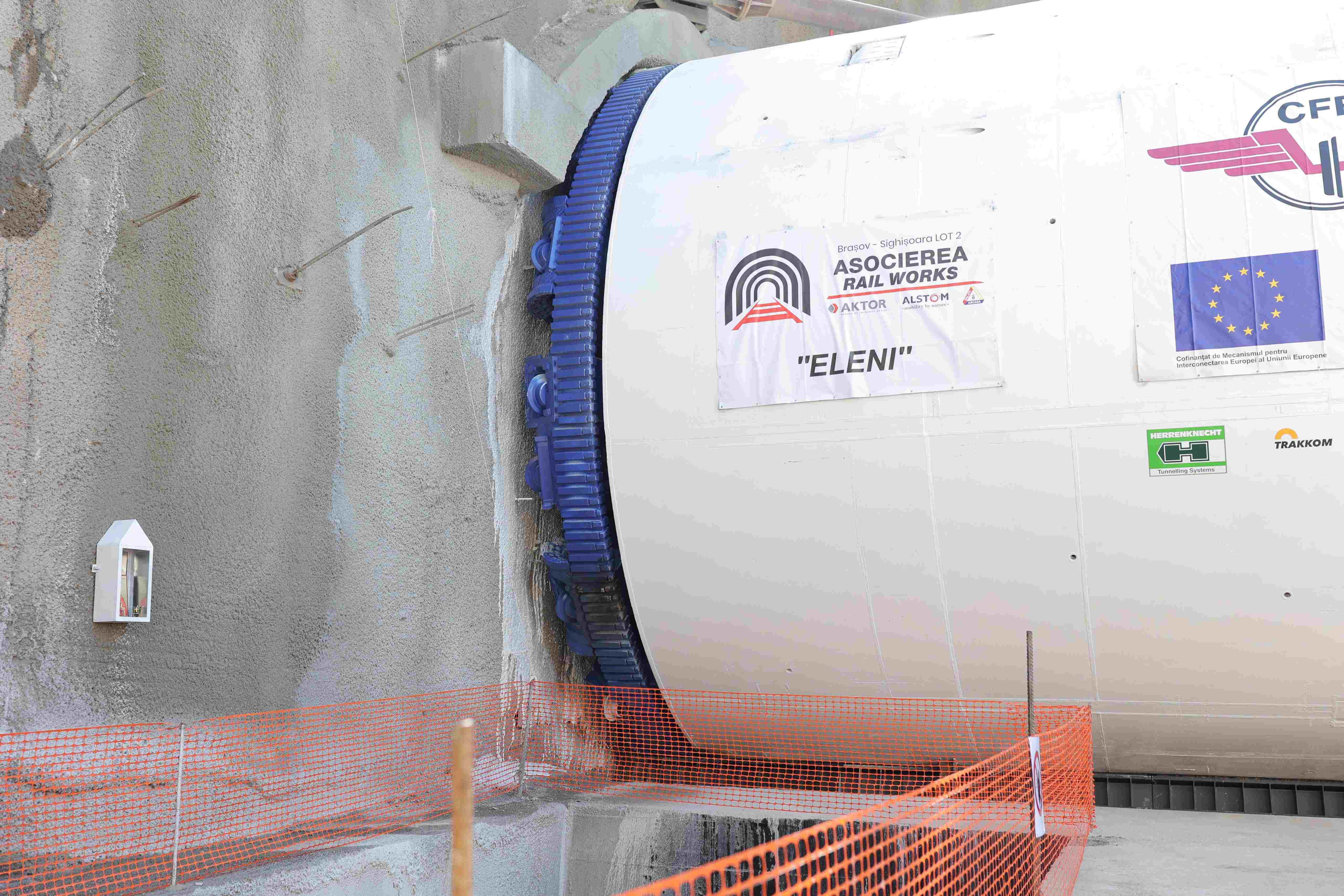 Asocierea Railworks, formata din companiile Aktor (lider) - Alstom - Arcada Company, a inceput lucrarile de forare a tunelurilor de cale ferata din zona Ormenis-Racos (judetul Brasov), de pe Magistrala M 200 Brasov - Sighisoara. Cele doua structuri se afla pe lotul median al tronsonului de cale ferata Apata - Cata si au o lungime de 12 km, galerie dubla (24 km, in total). Tunelurile gemene vor fi forate cu ajutorul a doua utilaje TBM (Tunnel Borring Machine), denumite Eleni si Varvara, furnizate de compania germana Herrenknecht. Eleni este un nume simbolic ce inseamna "Raza de soare", iar Sfanta Varvara este ocrotitoarea minerilor."Este pentru prima data pentru CFR cand va incepe forarea unui tunel cu o masina TBM. Constructia a implicat un ansamblu de proiecte. Inainte de a incepe saparea, au existat foarte multe etape in dezvoltarea acestei adevarate uzine. Speram sa intre intr-un termen predictibil si sa avem, asa cum este previzionat, in octombrie anul viitor primul tunel terminat, imediat si al doilea. Credem noi ca in vara se va lucra si pe tunelele 3 si 4 de la Homorod (din partea cealalta a sectiunii de cale ferata).
