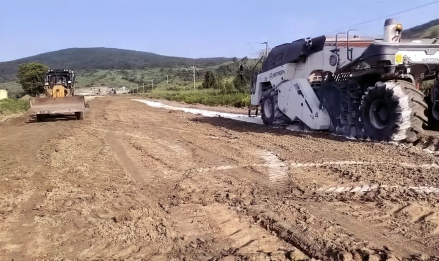 Pe langa forarea tunelurilor, constructorul continua lucrarile la terasamentele de cale ferata, parte integranta a proiectului.