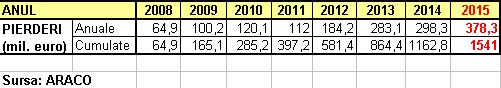 Pierderile totale cauzate de amanarea repetata a inceperii lucrarilor de constructie a autostrazii Comarnic-Brasov vor depasi, in acest an, valoarea de 1,54 miliarde euro, potrivit unor calcule ale Asociatiei Romane a Antreprenorilor de Constructii (ARACO), realizate pe baza studiului de fezabilitate al investitiei. Proiectul a inceput sa genereze pierderi statului roman inca din anul 2008, cand acestea au fost de 64,9 milioane de euro si s-a majorat gradual, in intervalul 2008-2014, pana la 298,3 milioane de euro in 2014, ajungand, la finele anului trecut, la o valoare cumulata de 1,16 miliarde euro. Pierderile estimate pentru 2015 se situeaza la 378,3 milioane de euro, de unde rezulta faptul ca, pana la sfarsitul anului curent, acestea vor insuma 1,541 miliarde euro.In urma finalizarii negocierilor pentru atribuirea contractului de concesiune cu asocierea Vinci-Strabag-Aktor, Compania Nationala de Autostrazi si Drumuri Nationale din Romania (CNADNR) a anuntat, la data de 18 iunie 2015, anularea procedurii pentru atribuirea contractului de concesiune a lucrarilor publice pentru proiectarea, constructia, finantarea, operarea si intretinerea autostrazii Bucuresti - Brasov, pe tronsonul Comarnic-Brasov. "Decizia a fost luata in conformitate cu art.94 din HG 925/2006 («indiferent de momentul initierii procedurii de atribuire, autoritatea contractanta are obligatia de a verifica, inainte de incheierea contractului, respectarea dispozitiilor referitoare la angajarea cheltuielilor din bugetele ce intra sub incidenta legislatiei privind finantele publice») si art. 209 din OUG nr. 34/2006 («autoritatea contractanta are obligatia de a anula aplicarea procedurii pentru atribuirea contractului de achizitie publica in urmatoarele cazuri: litera c) daca abateri grave de la prevederile legislative afecteaza procedura de atribuire sau daca este imposibila incheierea contractului»)", se arata intr-un comunicat oficial al CNADNR.
