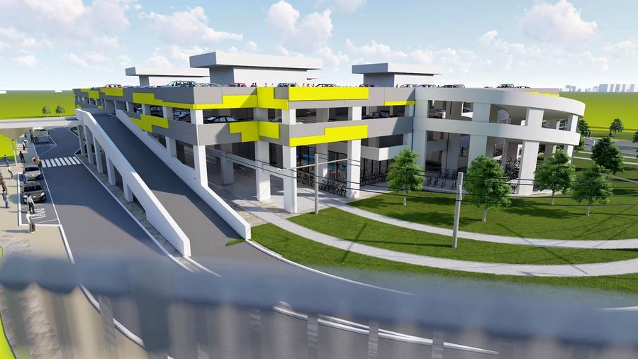 Parcarea de tip "park and ride" (P+2E) propusa in nodul intermodal de la Pasajul Domnesti este destinata in special masinilor care vin din zona limitrofa, oamenii avand ulterior o legatura directa cu transportul public care va sosi la intervale scurte de timp. Cladirea va avea o suprafata desfasurata totala de circa 20.000 mp si o capacitate de circa 500 de locuri.