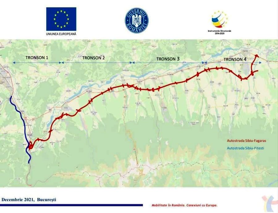 Autostrada Sibiu - Fagaras este compusa din patru tronsoane dupa cum urmeaza: