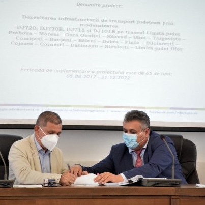 Presedintele Consiliului Judetean Dambovita (CJD), Alexandru Oprea, a semnat contractul de executie a lucrarilor cuprinse in lotul III al proiectului finantat prin Programul Operational Regional 2014 - 2020 „Dezvoltarea infrastructurii de transport judetean prin modernizarea DJ 720, DJ 720B, DJ 711 si DJ 101B, pe traseul limita Judet Prahova - Moreni - Gura Ocnitei - Razvad - Ulmi - Targoviste - Comisani - Bucsani - Baleni - Dobra - Finta - Bilciuresti - Cojasca - Cornesti - Butimanu - Niculesti - limita Judet Ilfov”. Proiectul are o valoare totala de 212.845.189,34 lei, iar lotul III are valoarea de 41.662.323,97 lei.