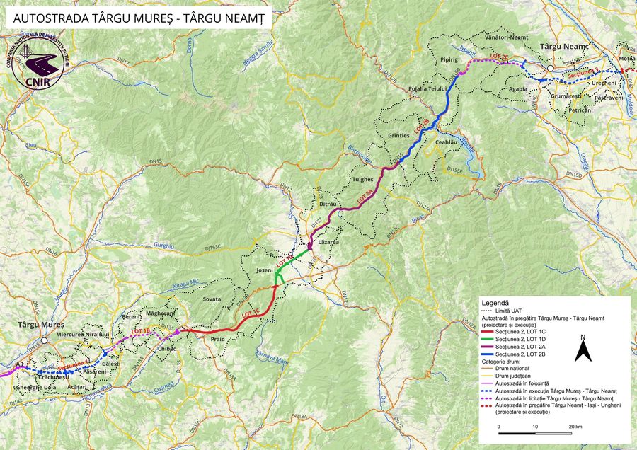 • Lot 1B: Miercurea Nirajului - Sarateni (km 22+000 - km 45+400);