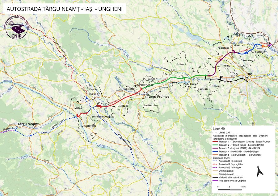 Pentru tronsonul 3, Letcani - Iasi (lungime 17,7 km), tronsonul 4, Iasi - Golaiesti (12,7 km), respectiv tronsonul 5, Golaiesti - Pod Ungheni (2,77 km), documentatiile urmeaza sa fie aprobate.