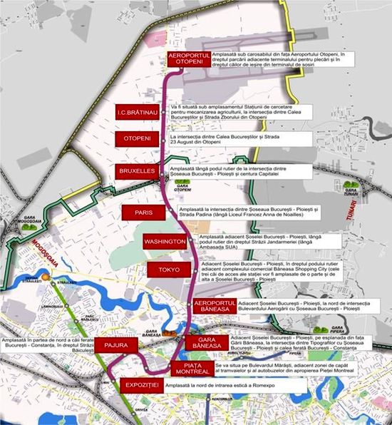 "Aceasta linie, inca din faza de proiectare preliminara pentru studiul de fezabilitate, a fost pregatita prin crearea posibilitatii extinderii pana la Terminalul II al Aeroportului International Henri Coanda. Impartirea in doua sectiuni, cu punct comun Statia Tokyo, a fost facuta pentru a permite abordarea in paralel a saparii tunelului, in doua directii (cu plecare din statia Tokyo), cu 4 utilaje TBM si, ulterior, pentru contractarea unitara a lucrarilor de finisaje, instalatii, semnalizari si de achizitii material rulant", a precizat Irinel Scriosteanu.