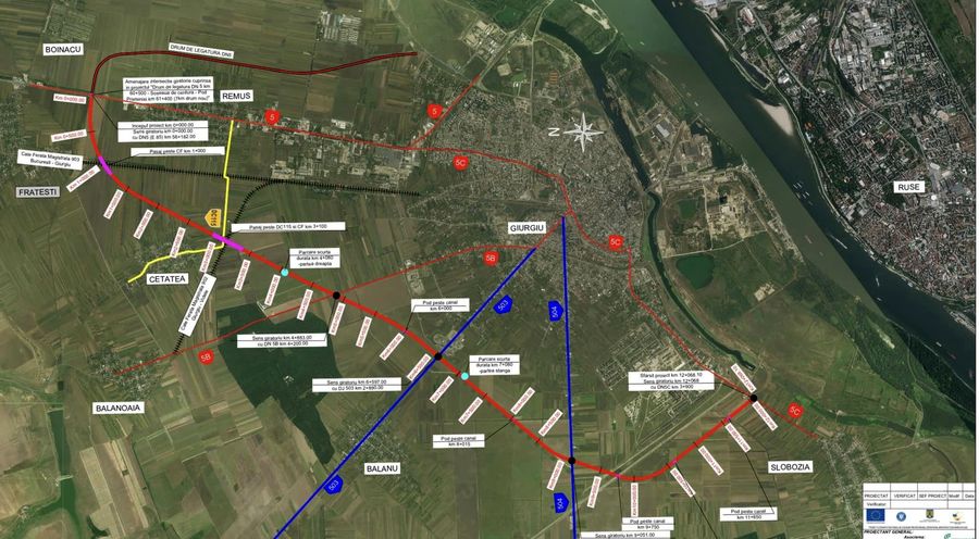 Proiectul de constructie a Variantei Ocolitoare (VO) Giurgiu a primit autorizatie de construire, iar lucrarile ar putea sa inceapa in toamna acestui an, potrivit estimarilor autoritatilor locale. Documentatiile tehnice (Studiul de Fezabilitate si Proiectul Tehnic pentru Executie) si procedura de expropriere, au fost finalizate. Drumul va avea o lungime de 11,5 km, va traversa localitatile Giurgiu, Fratesti, Stanesti si Slobozia si Giurgiu si se va conecta cu drumul de legatura dintre DN5 si Podul Prieteniei (drumul de beton care a fost dat in trafic in decembrie 2021) prin sensul giratoriu de pe DN5. Pe traseu vor mai fi construite 22 de podete, doua pasaje peste calea ferata (in lungime de 415 metri peste CF Bucuresti - Giurgiu si 496 metri peste Magistrala 902 Bucuresti - Videle) si vor fi amenajate doua parcari de scurta durata (cate una pe fiecare sens de circulatie).Valoarea lucrarilor autorizate este de 368,4 milioane lei (76 milioane de euro), fara TVA, iar sursa de finantare este asigurata din fonduri europene nerambursabile, prin Programul Transport 2021-2027.