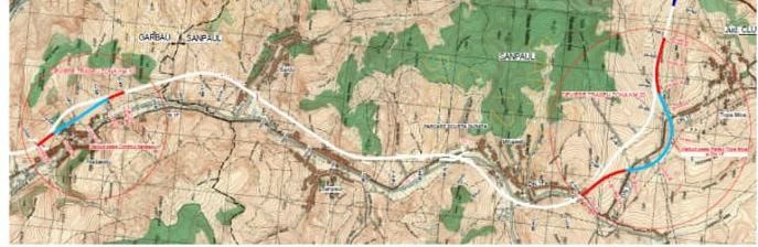 In ceea ce priveste zona cuprinsa intre km 21+406– km 24+890, traseul autostrazii se va devia in zona km 21+406,49 prin construirea unui viaduct cu lungimea de aproximativ 2 km, conducand la depasirea in aval a traseului DN1F precum si a cursului paraului Topa Mica, ajungand pe malul stang al acestuia, intr-o zona relativ plana. Racordarea la traseul existent se va realiza in zona km 24+890 al traseului initial.