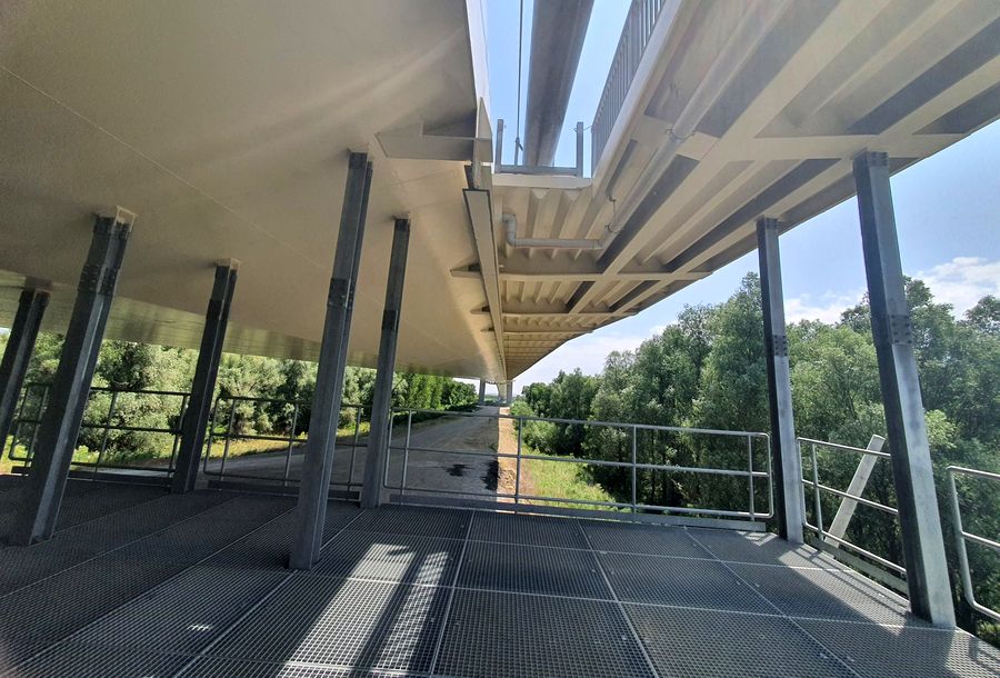 Pentru a asigura durabilitate si protectie anticoroziva ridicata, tablierul este si el dezumidificat in interior. Anumite rigidizari longitudinale vor sunt utilizate drept canale pentru distributia aerului dezumidificat in spatiul intern al tablierului. Un sistem de senzori monitorizeaza asigurarea pastrarii starii de umezeala din caseta sub nivelurile ce provoaca oxidarea. Se va mentine o umiditate relativa sub 40%, pentru a nu exista coroziune si pentru a permite circulatia pe pod in siguranta, in orice anotimp.