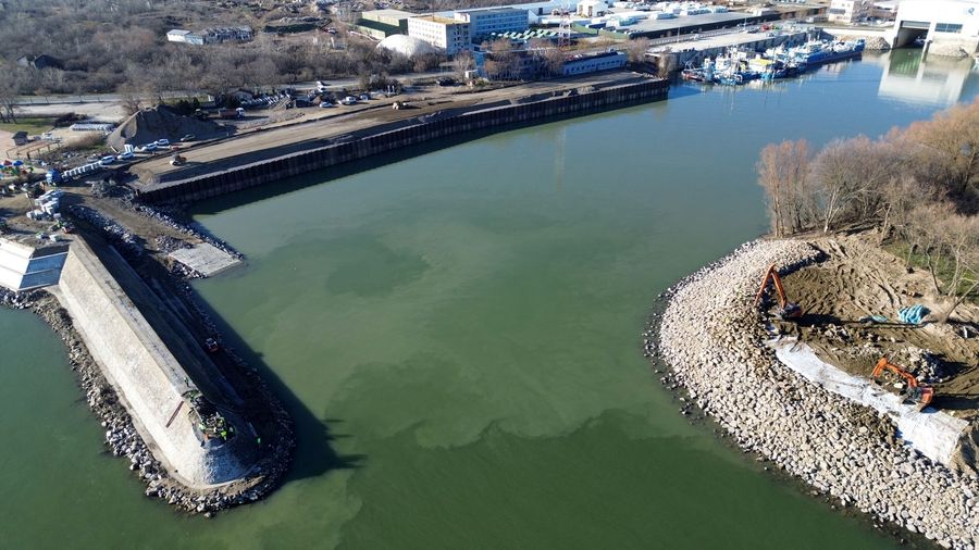 Pe santier, constructorul a finalizat reparatia completa a molului de dirijare amonte, esential pentru siguranta si controlul navigatiei, precum si lucrarile de amenajare si finalizare a noului mol de protectie din aval, destinat protejarii infrastructurii portuare impotriva factorilor hidrotehnici si imbunatatirii fluxului operational.