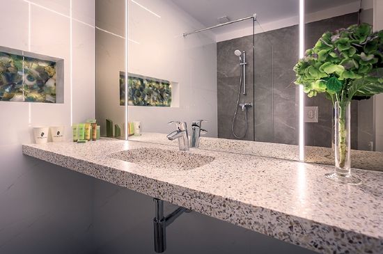 Nu se poate vorbi despre sustenabilitate doar cu referire la economie de resurse. Unii dintre marii distribuitori de obiecte sanitare si blaturi de bucatarii atat din tara, cat si din Europa, precum si dezvoltatori imobiliari, au pariat, in cresterea afacerilor lor, pe ipoteza ca pot maximiza profiturile prin importuri de marfuri ieftine, necertificate, din tari indepartate, cu regimuri autoritare. Se demonstreaza acum ca nu este de ajuns doar sa discutam si sa afisam pe site-uri lozinci despre sustenabilitate, ci trebuie actionat pentru reducerea poluarii/costurilor, aducand lanturile de aprovizionare cat mai aproape de zona investitiilor imobiliare, sa cumparam produse CERTIFICATE, fabricate in Romania sau in proximitate si sa fim convinsi ca stabilitatea merita un pret ceva mai mare si o reducere a profiturilor cu cateva procente. Este un trend oferirea de spatii de utilitate publica cu bai moderne, prietenoase, confort maxim, in cladiri de birouri, mall-uri, scoli sau spitale. Hotelurile, de asemenea, au inceput sa aplice aceste principii, mutand bugetele mari dedicate receptiilor catre camere, dar mai ales catre bai, care erau amenajate pana acum cu bugete foarte mici. Este o directie si o schimbare de atitudine realizata cu multe eforturi din partea investitorilor, apreciate de catre piata.
