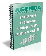 Colectia de articole tematice include materialele redactionale publicate in cadrul revistei Agenda Constructiilor la sectiunea dedicata analizelor de piata anuale in domeniu. Sunt incluse date statistice, analize si comentarii ale reprezentantilor companiilor: Teraplast, Rehau Polymer, Fusion Romania, Saint-Gobain Construction Products Divizia Conducte, Industrial Plast, Apasco, Pipelife, Superlit, HTI Romania, Aliaxis, Uponor, Georg Fischer, Wavin si altele. Totodata, sunt disponibile informatii furnizate de autoritatile centrale, cu privire la absorbtia fondurilor europene prin Programul Operational Sectorial (POS) – Mediu, utilizate in vederea extinderii sau modernizarii retelelor de apa si canalizare, constructia si reabilitarea statiilor de tratare a apei potabile si a celor de epurare etc. In primul trimestru din 2011, companiile implicate pe piata de tubulatura si fitinguri din Romania au anuntat o crestere de pana la 10% a activitatii fata de aceeasi perioada a anului trecut, pe fondul revigorarii usoare a domeniului specific, insa si ca urmare a faptului ca, in 2010, afacerile firmelor din bransa s-au situat la un nivel minim. Astfel, managerii societatilor specializate au raportat scaderi ale cererii cuprinse intre 10% si 30% pentru precedentele 12 luni, principala cauza semnalata fiind reprezentata de blocarea investitiilor publice in cazul proiectelor de alimentare cu apa, de canalizare si transport al gazelor naturale si petrolului. In general, in 2010 s-au concretizat estimarile negative anuntate la inceputul anului, cand o diminuare de 20% a sectorului reprezenta cel mai sever scenariu posibil. Transpusa in cifre, aceasta reducere a insemnat o valoare a pietei de tubulatura din material plastic de aproximativ 100 milioane de euro, avand in vedere faptul ca, in 2009, aceasta a fost de 125 milioane de euro. Pentru anul in curs perspectivele sunt pozitive, fiind estimata o crestere a pietei de tubulatura si fitinguri de 15%-20%. Astfel, valoarea sectorului tevilor din material plastic ar putea ajunge, la finele acestui an, la 120 milioane de euro, nivel situat in apropierea celui din 2009. Insa, pentru ca acest deziderat sa devina posibil, este necesara o buna absorbtie a fondurilor europene destinate Romaniei prin POS-Mediu si o colaborare optima intre companii si autoritatile locale pentru implementarea proiectelor. In cazul in care nu vor aparea noi dificultati in aplicarea programului comunitar, cifra de afaceri a companiilor specializate in productia si comercializarea de tubulatura din PVC (policlorura de vinil) si PE (polietilena) - materialele cel mai des utilizate pe piata interna de profil - ar putea reveni la nivelul din 2009, dupa scaderile drastice consemnate anul trecut. O tendinta similara va fi consemnata si in cazul societatilor care livreaza fitinguri si scule pentru astfel de instalatii, avand in vedere interdependenta dintre aceste segmente. Astfel, previziunile de revenire a activitatilor specifice pe un trend ascendent se datoreaza obligatiilor asumate de statul roman prin tratatul de aderare la Uniunea Europeana, care prevad atingerea unor obiective importante in ceea ce priveste investitiile in infrastructura utilitara. Pentru mai multe informaţii, click aici!ABONARE REVISTA (click aici): PROIECTE | INVESTITII | REVISTE | INDEX COMPANII