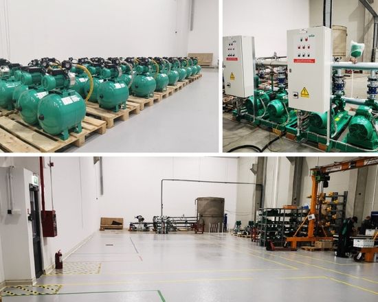 - Activitatea de asamblare si productie locala a Grupului Wilo in Romania se desfasoara in conditii de top, prin linii de asamblare si testare, service, ambalare si depozitare, gestionate de o echipa dinamica si profesionista. Practic, dispunem de 500 mp cu posibilitatea de a ne extinde pana la 1000 mp, zona in care avem trei posturi de lucru: doua posturi de lucru pentru asamblare mecanica, un post de lucru pentru asamblarea electrica, unde realizam conexiunile electrice dintre panourile de comanda si grupurile de pompare si o instalatie de testare pentru incercarile hidraulice si functionale ale acestora. Avem atat certificare ISO 9001, ISO 14001, ISO 45001, cat si omologarea productiei de catre Grupul Wilo, fiind totodata dedicati imbunatatirii continue a sistemului de management al calitatii si proceselor de productie si asamblare, respectand filozofia Kaizen si LEAN. Realizam asamblare locala in Romania pentru grupuri de ridicare presiune pentru sisteme de alimentare cu apa, grupuri de ridicare presiune hidranti interiori in conformitate cu Normativul P118/2, precum si pentru pompe submersibile si hidrofoare.