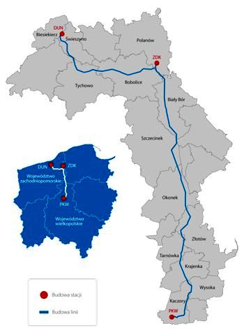 Linia electrica aeriana de 400 kV, dublu circuit, va face legatura intre statiile de transformare Żydowo Kierzkowo si Piła Krzewina, pe o lungime de 119 km, inlocuind vechea linie de 220 kV care a fost operationala din 1970.