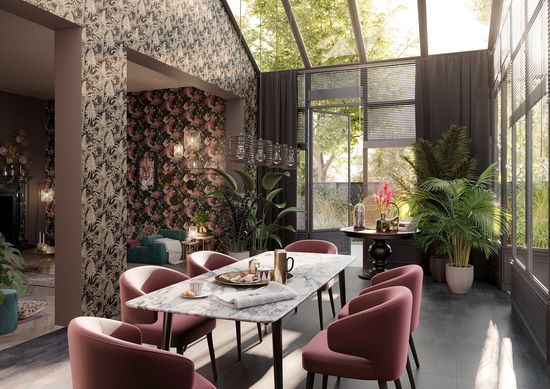Stilul Come Over are ca principal rol exprimarea bucuriei si a relaxarii de a reveni acasa la finalul unei zile. In acest decor, oricine isi poate gasi linistea si confortul. Caracterizat de tesaturi catifelate, de culori calde si totusi pline de viata, Come Over imbie la statornicie. Rozul pudrat este intens folosit in acest stil de amenajare, fiind noul alb din interior - nu prea steril, dar ce da impresia de delicatete. Acesta se combina de minune cu nuante de ruginiu si bordeaux, creand o atmosfera captivanta. Nu lipsesc nici accentele de culoare, prin mustar puternic, in timp ce pattern-urile inflorate aduc relaxarea si veselia.