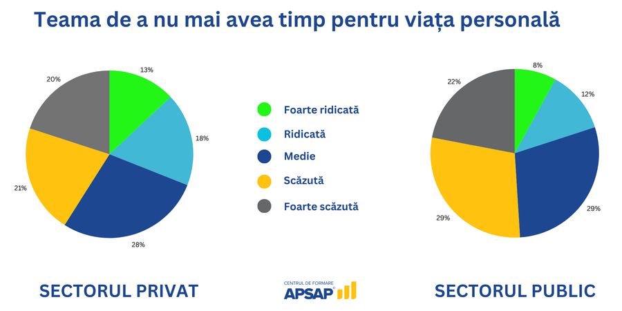 Cea mai mare temere a angajatilor atat a celor din sectorul public, cat si a celor din sectorul privat este aceea de a nu mai avea timp pentru viata personala. In ciuda acestui fapt, peste 27% dintre respondenti ar alege un loc de munca solicitant, dar cu beneficii salariale motivante.