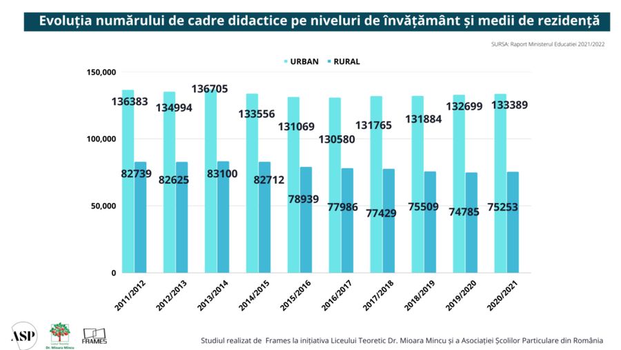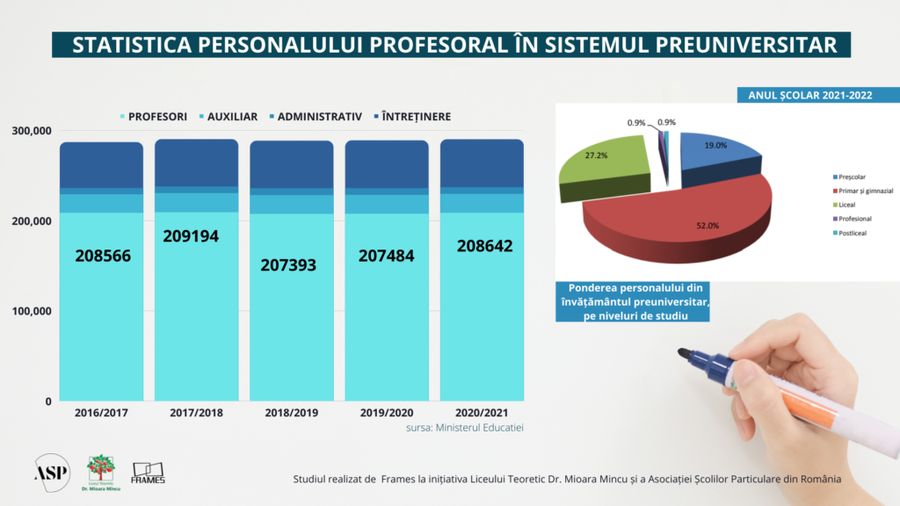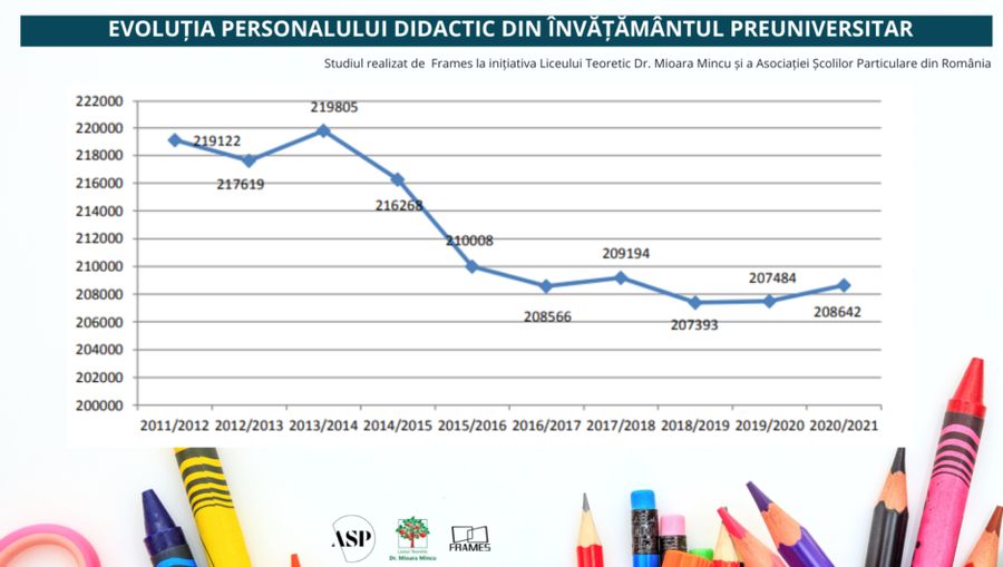Statisticile Ministerului Educatiei arata ca, in anul scolar 2020/2021, numarul personalului didactic din invatamantul preuniversitar a crescut fata de anul scolar anterior cu 1158 persoane dar, pe de alta parte, ramane cu 552 de persoane sub nivelul din anul scolar 2017/2018.