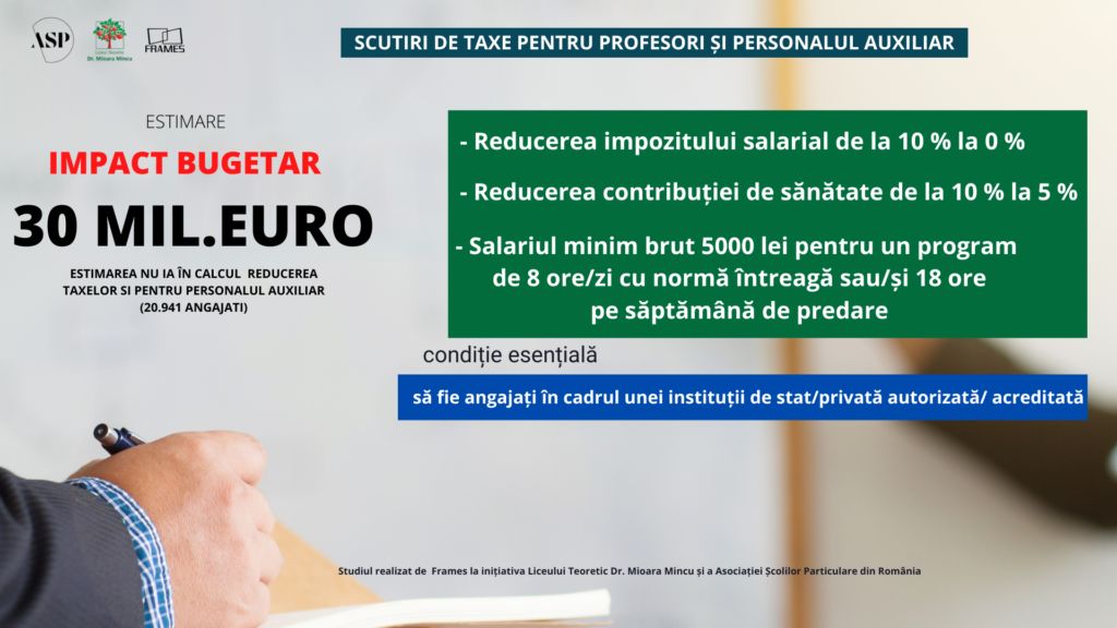 „Trebuie sa gasim solutii pentru a atrage mai multi profesori in scoli, sa reducem numarul copiilor per profesor, iar zona salariala este extrem de importanta. Trebuie sa putem sa-i motivam pe tineri sa aleaga aceasta cariera cu un pachet de salariu, educatie continua si alte facilitati, inclusiv aceasta scutire de impozit, cu care sa putem concura cu alte domenii”, a declarat Christian Comsa, presedintele Asociatiei Scolilor Particulare din Romania.