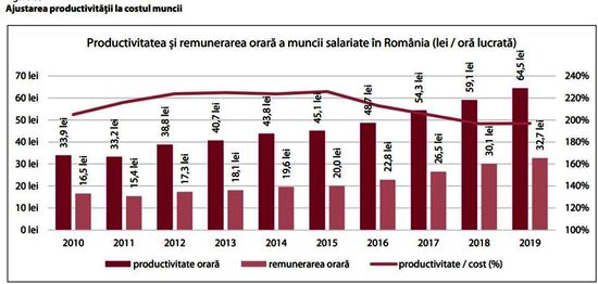 "Contrar a ceea ce se spune in spatiul public, cresterile salariale din ultimul deceniu au fost insotite de cresteri echivalente ale productivitatii muncii. Discursul dominant din spatiul public este, totusi, inselator de la bun inceput, din moment ce vorbim de un rationament strict in termeni de rate de crestere, a carui asumptie principala este existenta unui punct de echilibru originar intre nivelul productivitatii si nivelul remunerarii muncii. Neluarea in calcul a distributiei valorii adaugate intre munca si capital face ca discursul public despre productivitate sa fie unul extrem de partizan, scopul fiind de fapt limitarea cresterilor salariale si mentinerea unui raport cat mai mare intre productivitate si costuri, fara ca angajatorii sa faca eforturi investitionale si organizationale pentru cresterea productivitatii. Nu e, deci, deloc intamplator ca tema productivitatii apare in spatiul public doar atunci cand situatia de pe piata muncii tinde sa impinga salariile in sus.
