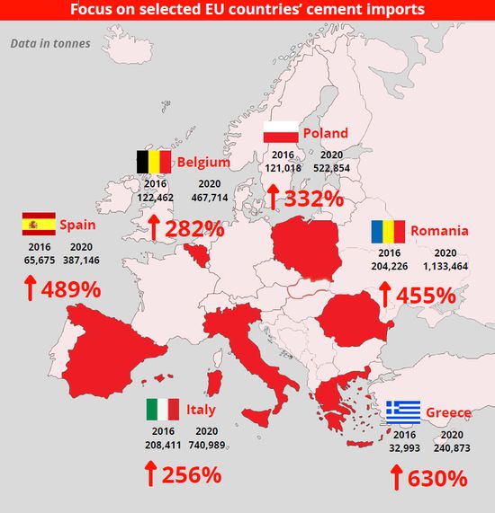 Importurile de ciment in Romania au crescut cu 77% in 2020 comparativ cu 2019, iar in ultimii cinci ani, volumul acestora s-a majorat de cinci ori. Potrivit unor date Eurostat compilate de CEMBUREAU - organizatia europeana a producatorilor de ciment, importul de ciment pe piata locala s-a majorat cu 455%, de la 204.226 de tone in 2016 la peste 1,13 milioane de tone in 2020. Aceasta tendinta se manifesta la nivelul intregii Uniuni Europene. In intervalul 2016-2020, importurile in Grecia au crescut cu 630% (de la 32.993 tone la 240.873 tone), in Spania cu 489% (de la 65.675 tone la 387.146 tone), in Polonia cu 332% (de la 121.018 tone la 522.854 tone), in Italia cu 256% (de la 208.411 tone la 740.989 tone) si in Belgia cu 282% (de la 122.462 tone la 467.714 tone). Conform CEMBUREAU, cresterea semnificativa a acestor importuri este de cresterea capacitatilor de productie in tarile vecine UE (in perioada 2018-2025 sunt deschise linii de productie de 70 de milioane de tone, cu un grad scazut de utilizare, de 40%-60%), in contextul unui nou "model de afacere" in domeniu, care se bazeaza pe importul de clincher si procesarea in instalatiile de macinare din UE. Avand in vedere cerintele referitoare la emisiile de CO2, in perioada urmatoare importurile vor continua sa creasca exponential alaturi de pretul carbonului pe EU ETS (EU Emissions Trading System). Trendul s-ar putea inversa numai in cazul in care se vor adopta masuri pentru nivelarea conditiilor de concurenta intre producatorii din UE si cei din afara spatiului comunitar, spun reprezentantii CEMBUREAU. Totodata, importurile ridicate inregistrate in tara noastra (nivelul de 1,13 milioane de tone importat de Romania in 2020 este cel mai mare din UE) se explica prin faptul ca tara noastra se invecineaza pe doua treimi din granita cu tari non-UE. "Acest lucru poate reprezenta o amenintare pentru industriile in care reglementarile UE impun taxe de mediu, pe care tarile non-UE nu le au, in conditiile in care pretul carbonului a depasit 40 de euro/ tona", comenteaza Marinela Dracea, presedintele CIROM. Productia globala de ciment s-a stabilizat, in ultimii trei ani, la circa 4,1 miliarde de tone. China ramane cel mai mare producator global (56,2% din total), urmata de India (7,8%), tarile CEMBUREAU (5,9%) si SUA (2,2%).