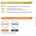 "Veniturile consolidate la nivelul sectorului au fost in crestere usoara de 3% in 2016, insa pentru aproape jumatate dintre companii rezultatul net a fost in scadere. Un aspect alarmant este ca orizontul de finantare ramane unul pe termen scurt, 79% din total datorii fiind curente. La nivel sectorial, una din doua companii are un grad de indatorare de peste 80% si isi plateste datoriile mai tarziu decat i-ar permite ciclul operational. Tendinta pe termen lung este ingrijoratoare, dat fiind ca jumatate din firme prezinta un grad de insolventa peste medie", a precizat Alexandru Fotia, Senior Financial Analyst la Coface Romania.