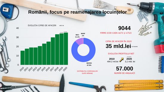 Potrivit datelor Frames, afacerile companiilor care activeaza in comertul cu ridicata si amanuntul al materialelor pentru constructii, echipamentelor sanitare si de incalzire (COD CAEN 4673 si 4752) ar putea atinge, in 2020, nivelul de 35 de miliarde lei, cu peste 20 miliarde lei mai mult decat in 2010. Cele mai recente date de la Ministerul Finantelor arata ca cele 9.044 de firme active in acest sector au incheiat anul 2018 (pentru 2019 nu exista inca datele finale) cu afaceri totale de 33,3 miliarde lei si un profit net de 2,32 miliarde lei, fata de 494,2 milioane de lei inregistrat in 2010.