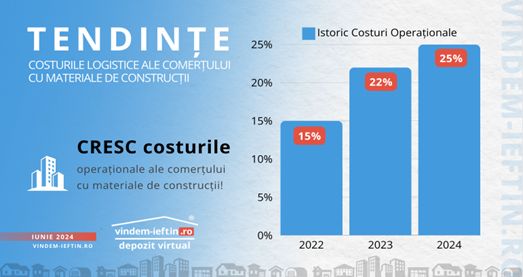 Comertul cu materialele de constructii inregistreaza o crestere constanta a costurilor logistice. Dupa o majorare de 22% in 2023, in primele sase luni din acest an s-a ajuns la 25%. Cresterea influenteaza evolutia vanzarilor, care au scazut cu 15% in primul trimestru din 2024, si ii afecteaza direct pe distribuitorii si producatorii de materiale de constructii, care sunt nevoiti sa reduca marja de profit pentru a nu pierde clienti. Platforma vindem-ieftin.ro vine in sprijinul acestora prin lansarea conceptului Depozitul Virtual, care permite reducerea costurilor logistice cu pana la 15%."Prin lansarea conceptului inovator Depozitul Virtual – singura franciza de materiale de constructii din Romania – se elimina necesitatea stocurilor si logisticii proprii. Acest model reduce semnificativ costurile operationale si ofera o solutie sustenabila si eficienta pentru toti actorii din lantul de aprovizionare. Depozitul Virtual functioneaza prin integrarea directa cu producatorii de materiale de constructii si permite ca produsele sa fie expediate direct de la fabrica la clientul final. Astfel, se elimina costurile logistice asociate cu depozitarea si manipularea materialelor, care pot reprezenta pana la 15% din costul total al produselor", a declarat Cosmin Raileanu, fondatorul platformei vindem-ieftin.ro.
