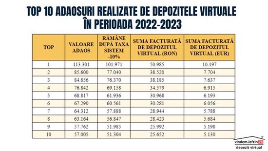 Aceasta propunere de afaceri nu vine doar cu avantajul unei inovatii de top, ci si cu o formula financiara extrem de atractiva pentru potentialii francizati: un generos comision de 45-50% din adaosul realizat lunar. Spre comparatie, infiintarea unui depozit traditional implica investitii intre 50.000 si 200.000 de euro, in timp ce Depozit Virtual necesita doar un cost de activare de 1.190 de euro, care se va majora la 2.500, de la 1 ianuarie 2024.