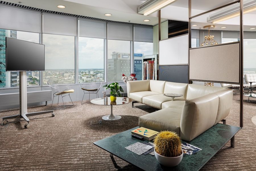 In cadrul showroom-ului, clientii pot explora branduri de design de mobilier precum Herman Miller, Knoll, Hay, Muuto, NaughtOne, GEIGER sau Maharan, solutii acustice sustenabile, dar si cele mai recente tendinte in mobilier ergonomic si solutii de amenajare a spatiilor de birouri, inspiratie pentru zone de lucru moderne, personalizate si inovatoare.