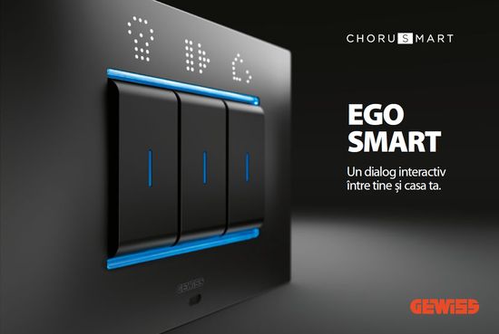 EGO SMART este noua rama inteligenta care imbina tehnologia cu elementele de design din lumea artei. Aceasta completeaza ChoruSmart, o gama de solutii, cu sisteme conectate si versatile, menita sa simplifice fiecare functie a casei.Cu linii fine si compacte, EGO SMART se adapteaza perfect unei case inteligente care isi propune sa combine stilul cu utilul si confortul cu automatizarea.