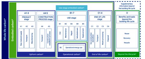 Figure 1. Domeniul de Aplicare al Carbonului Incorporat (conform World Green Building Council, 2019)Calcularea carbonului incorporat initial pentru tehnicile de imbunatatire a terenului a implicat parcurgerea a trei pasi cheie: